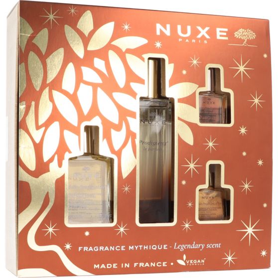 Con este cofre de Nuxe despertarás todos los sentidos. Contiene: Prodigieux Le Parfum 50ml + Aceite 30 ml + Aceite Floral 10 ml + Aceite Or 10 ml.