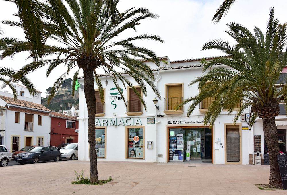 Situada en la antigua casa del tío Garriga, en la calle Bellavista del antiguo barrio Arrabal del Mar, que más tarde pasó a llamarse Plaza del Raset , su actual nombre, fue abierta el 9 de junio de 1971 Farmacia El Raset, por la Lda. Doña Araceli Fernández Fernández.